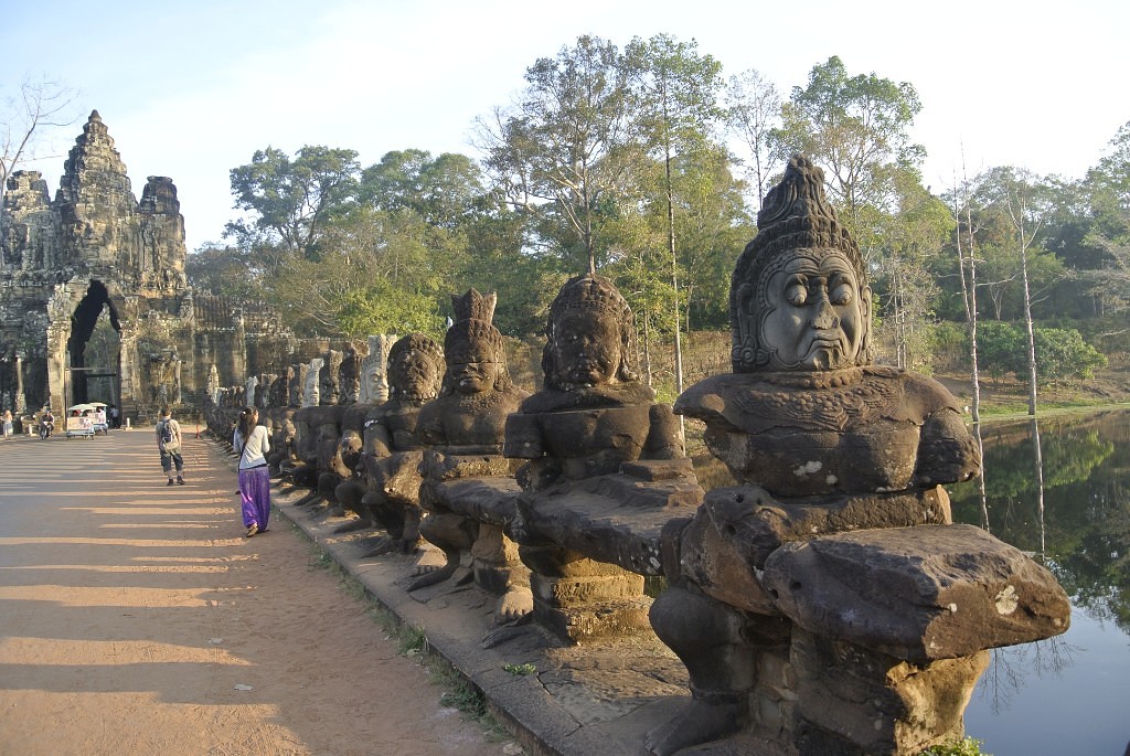 Сердце храмового комплекса — Ангкор Тхом, расположенный в центре города окруженный огромной стеной и рвом, наполненным водой.