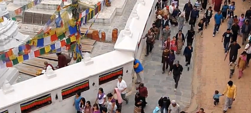 Верующие люди приходят сюда, чтобы помолиться. Они ходят вокруг ступы, вращают барабаны, таким образом повторяя мантру. Они верят, что такие действия могут принести удачу и отвратить беду. Причем есть люди, которые могут ходить здесь целый день. Более того, некоторые приходят уставшие после работы, но все-равно идут к ступе. выгляди это все так.