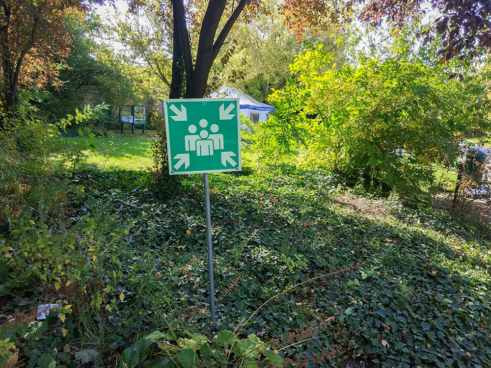 Аха! Получается это полезный знак для групповых экскурсий, но он не на дорожке, а достаточно глубоко в зеленой части парка. Зелень около знака не затоптана, что и ввело в размышления.
