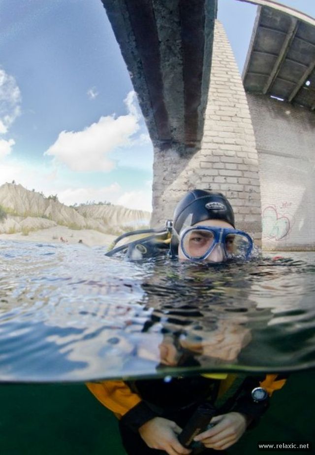 Неподалёку от Таллина есть небольшой городок Румму, но интересен не он, а находящийся рядом старый затопленный известняковый карьер, на дне которого находится бывшая тюрьма на 7000 мест и завод по производству доломита. В 1991 году карьер забросили и его постепенно затопило со всем оборудованием. Интересно, что до 2012 года полузатопленная тюрьма ещё функционировала. Только после случая с групповым утоплением заключённых её закрыли. Теперь это всё популярное место, как среди аквалангистов-любителей, так и среди дайверов-профессионалов. А это я, узнаёте?
