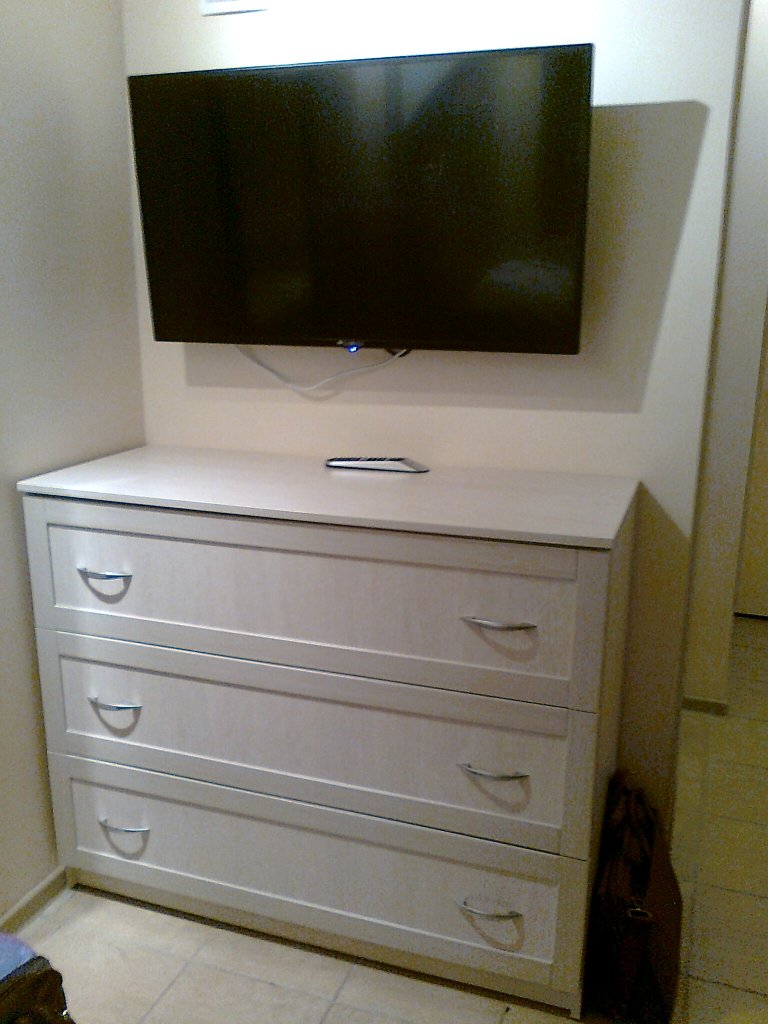 Об апартаментах. Это квартира-студия с кухней (столовые приборы, бокалы, сковородки, микроволновка, электрический чайник, плитка, холодильник и пр.), стиральная машина, телевизор, мебель (кровать, комод), хороший санузел.