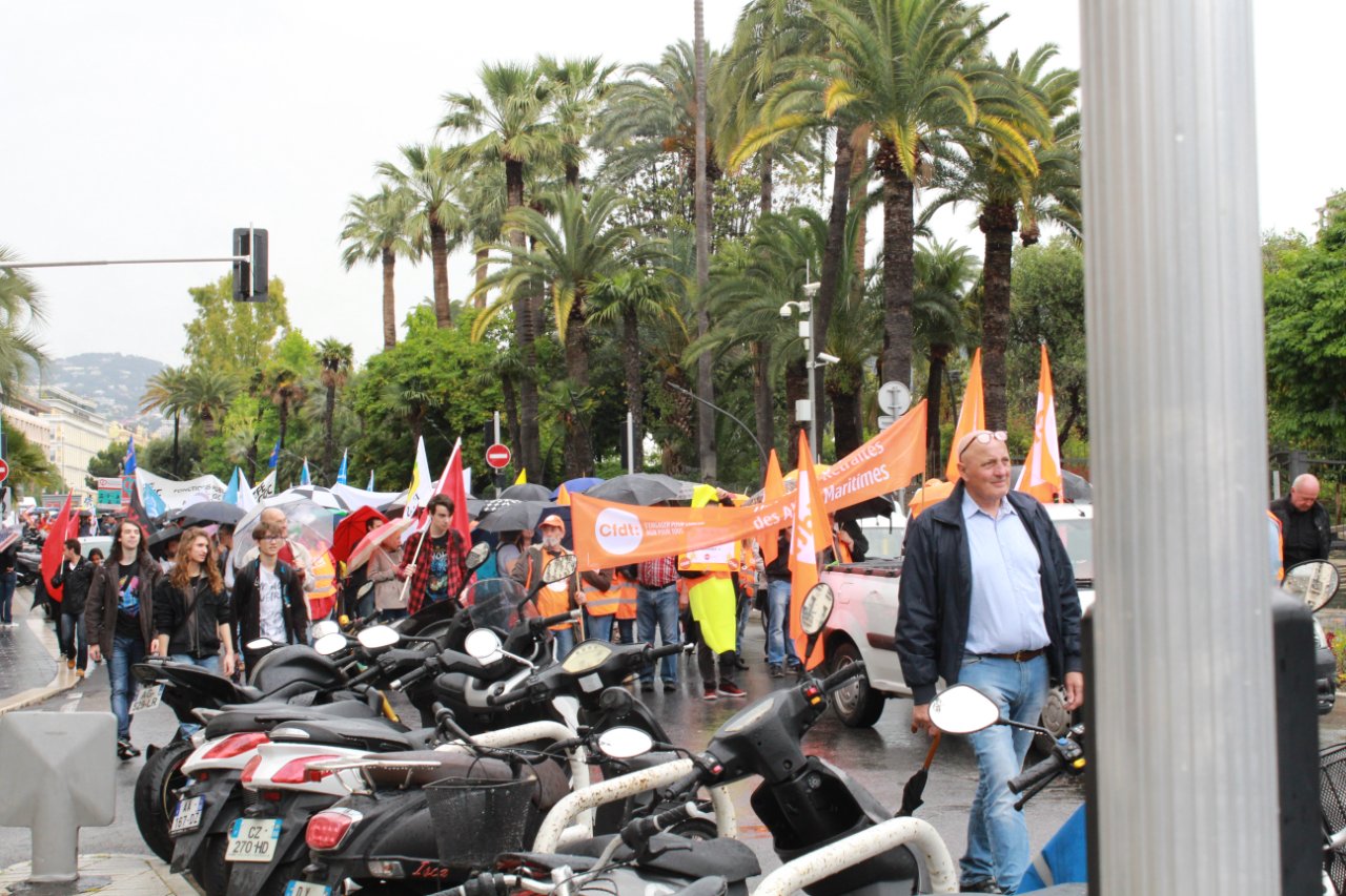 Были в мае 2018 года в городе Ницца, Франция. В будний день, в курортном месте, в рабочие часы народ проводил митинг. Количество протестующих было довольно приличное. Много людей с флагами, транспарантами. Символика левацкая. Попытались спросить у нескольких человек о их требованиях но те, толи из-за плохого английского, то ли из-за того, что сами толком не знают :) не смогли доходчиво объяснить, что они хотят. Но факт остаётся фактом: даже в таком благополучном городе как Ницца, народ готов что-то требовать и добиваться.