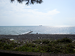 пляж_мини.jpg Это фото  центрального пляжа в Очамчире в разгар сезона и среди белого дня. Количество отдыхающих - сами видите. Кстати, Очамчира - военная база Российского флота. Флота там не много, но, на дальнем плане видно "кораблик". Он изредка постреливает в сторону Грузии. Тренируется, возможно.