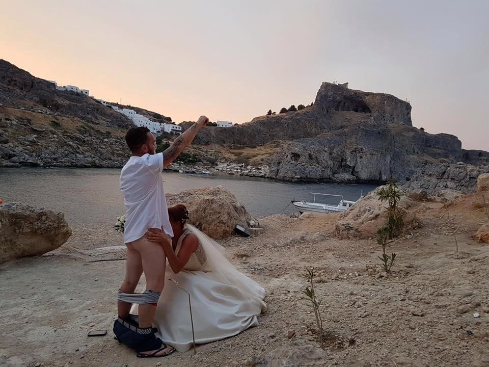 Нашла, кстати, занимательный случай со свадьбой за границей, не могла не поделаться. Короче, пара британцев на Родосе решили свадьбу сыграть. Все бы хорошо, если бы не пришла им в голову мысль сделать не слишком свадебный снимок. Я конечно знаю, что британцы голышом бегать любят, студенты такое перед экзаменом могут творить, но чтобы во время свадебной церемонии на Родосе сделать фото, где пара имитирует занятие оральным сексом - это уже перебор. Отличиться, естественно , получилось фото облетело практически весь мир. А вместе с "перелетом" и скандал религиозный разразился. Снимок был сделан на фоне знаменитой каплицы в затоке Святого Павла. Ну на фото видно хорошо. Благодаря Меттью и Карле Лунн, теперь молодожены не смогут устраивать свадьбы на Родосе, так как это запретило местное церковное руководство. Они считают, что это проявление неуважения к религиозному объекту и гарантировать, что это не придет больше никому в голову нельзя. Дурной пример заразительный.