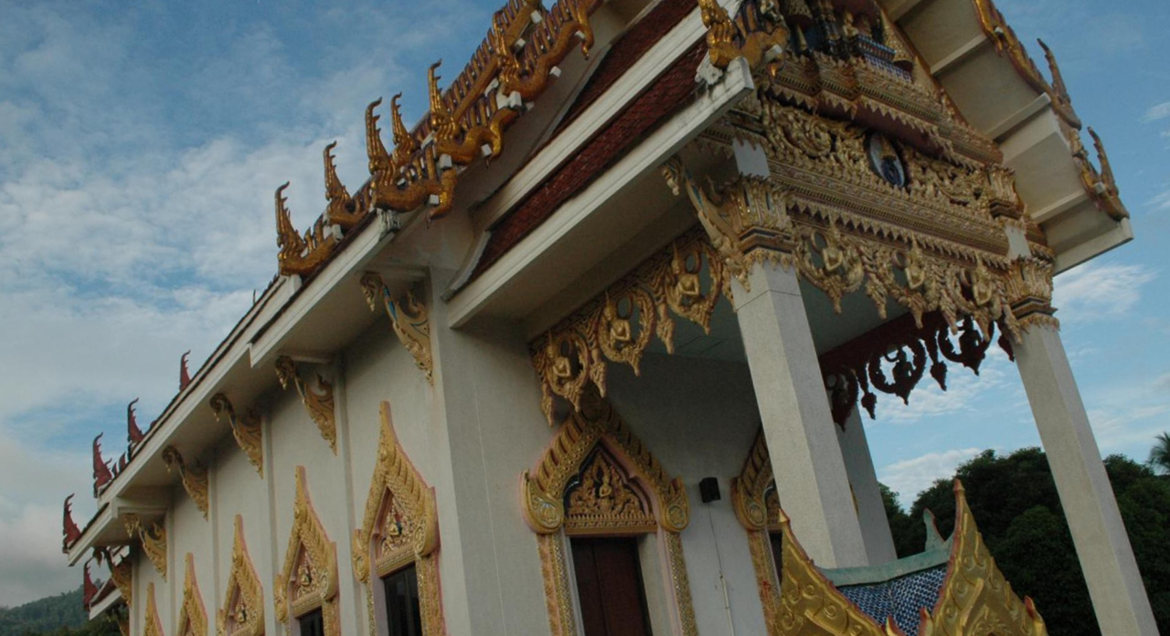 Более того, интересным для себя такой осмотр считают не только экскурсионные группы, но и самостоятельные туристы, которые сюда приезжают, в большей части, с пляжа Ламай. Некоторые считают, что к монаху можно обращаться за исцелением. Крыша храма, как и повелось, выполнена в ярко-красном цвете со сверкающей на солнце золотой отделкой. Его можно увидеть издалека, а даже если нет - то есть на это дело указатели. Как только подходишь к храму, сразу в глаза бросается традиционный тайский стиль с роговидными украшениями в виде стилизованной птичьей головы. Также на храме есть яркая резьба.