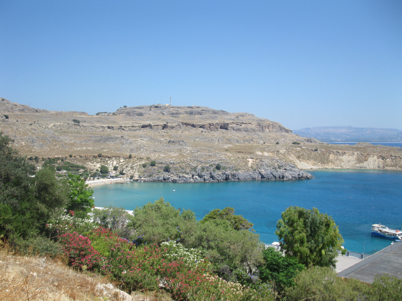 Место слияния двух морей Эгейского и Средиземного, действительно впечатляет, туда приезжает много туристов заниматься серфингом и просто поваляться на широченном пляже. В городе Линдос тоже были. Он расположен в очень живописном месте. На вершине горного склона находится древняя крепость, с которой открывается необыкновенная панорама на город и морское побережье. В долину бабочек не успели попасть.