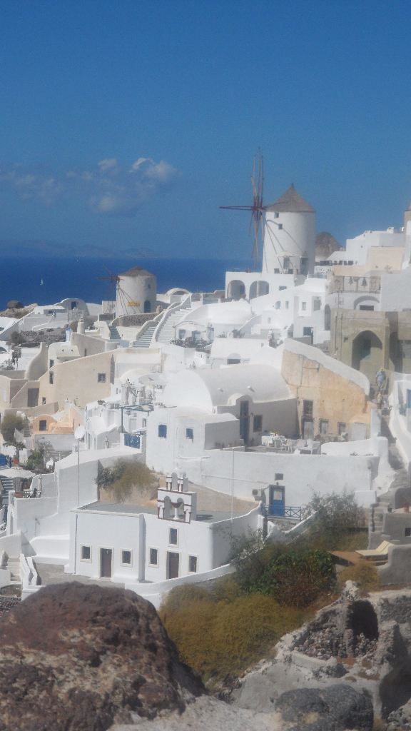 Поселения расположены в горах, поэтому постройки находятся на разном уровне. Домики связаны между собой, крыша одного – это пол для другого. Далеко внизу море и белые яхты, над тобой небеса, а между ними белоснежный рай.