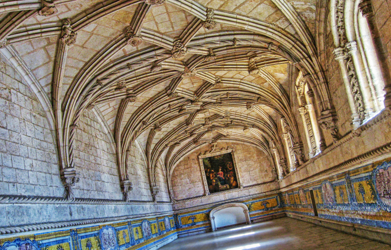 В той пристройке, где раньше были монастырские кельи, сейчас находится Морской музей. Ориентир - большой черный якорь. Главный вход в арке, немного левее южного портала, который всегда закрыт. Внутри монастырь похож на морской грот с покатыми сводами, которые держатся с помощью корабельных мачт-колонн. К этому вопросу архитекторы подошли со всей серьезностью, потому что 2 одинаковых колонн нет. При входе можно увидеть 2 надгробия. Одно из них Васко да Гамы, второе - Луиса де Камоэнса. Также в алтарной капелле есть еще и королевские надгробия, в которых покоится король Мануэл 1 и его жена Мария. Король при жизни имел второе имя - Счастливый. Португалия именно во время его правительства достигла рассвета. Узнать королевские надгробия можно по большим каменным слонам, которые их поддерживают. Почему слоны? Потому что так решили отдать дань индийским традициям о вечном покое верхом на слоне.