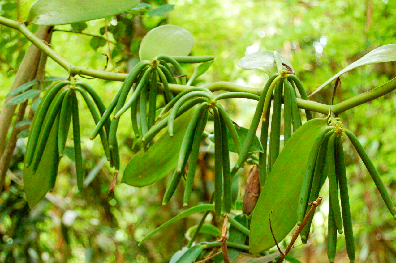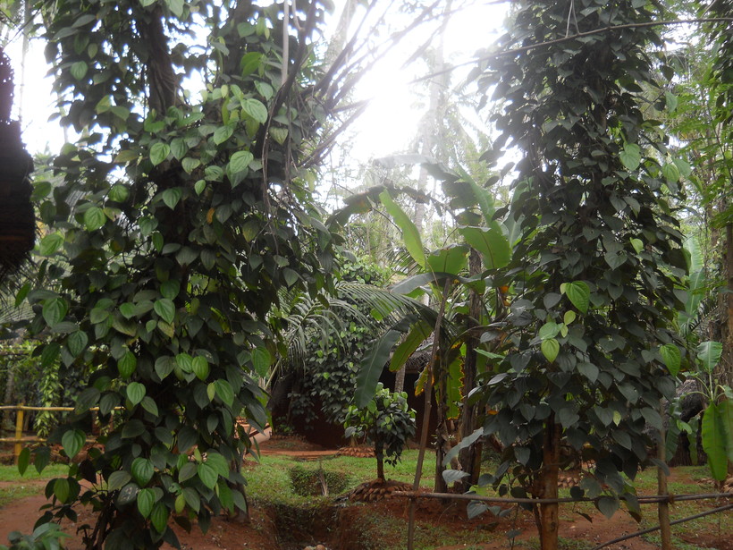 Многих людей очень привлекает ваниль. Я лично и понятия не имела, как она выглядит. Вообще ваниль - это вид орхидеи. На упаковках с ванилью в основном всегда изображен цветок. Но цветок ванили вообще никак не относится к тому, что мы добавляем в десерты. Весь аромат находится в стручках, которые образуются после цветения. Вот их сушат, измельчают в пудру и продают. Сама ваниль - это лиана, с сочными листьями и цветами. У меня дома даже есть цветок на нее похожий. Получения натуральной ванили очень сложный процесс, потому очень часто используют искусственный заменитель, который мы и покупаем в магазинах. А натуральное масло ванили часто используется в составе дорогих духов. Например, в аромате Шанель №5 используется масло ванили. Выглядят стручки ванили вот так. Мускатный орех, который тоже есть в саду, на самом деле- маленький. Я всегда думала, что мускатный орех, который я люблю очень добавлять в блюда, - это большой куст, типа лесного ореха. А это такое хиленькое на вид растение, я даже деревцом его назвать не могу. Очень тонкое и хрупкое, но дает хороший урожай. Выглядит вот так. Мы дома постоянно используем черный перец, но вот честное слово, всегда думала, что это растение, которое каждый год высевать надо. А оказалось, что это большая вьющая лиана, многолетняя. В дикой природе она растет на разных деревьях, как у нас дикий виноград. В саду специй для перца есть специальные опоры. Чтобы сделать черный перец, нужно высушить плоды этой лианы. Сохнут они очень быстро, буквально несколько дней. А чтобы получился не черный, а белый перец - с плодов просто снимают кожуру. Зеленый перец - те же плоды, только сушат их не на солнце, а в тени. Вот так выглядит перец. Также в саду есть корица. Корица - это кустарник, но там с нее формируют что-то больше похожее на дерево. Потом снимаю кору, сушат, измельчают и вот вам уже и корица