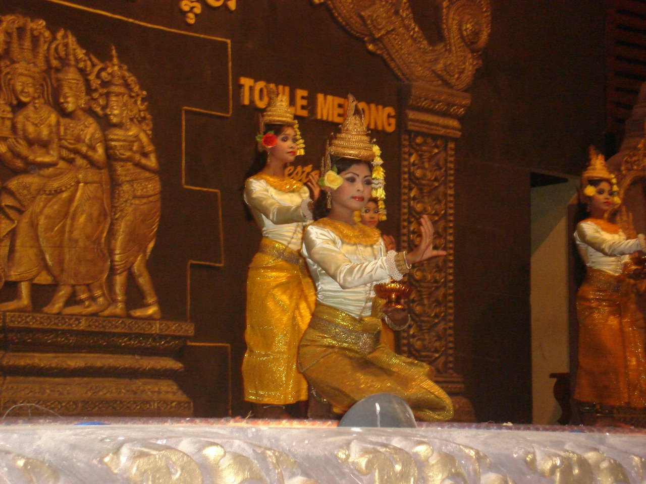 Я видела современное исполнение танцев апсар в Сиемреапе. Это не просто танец - каждое движение рук и пальцев означает определенное слово или фразу. Это завораживает. Кстати о руках, танцовщицы именно так могут выгибать пальцы, этому учатся специально.