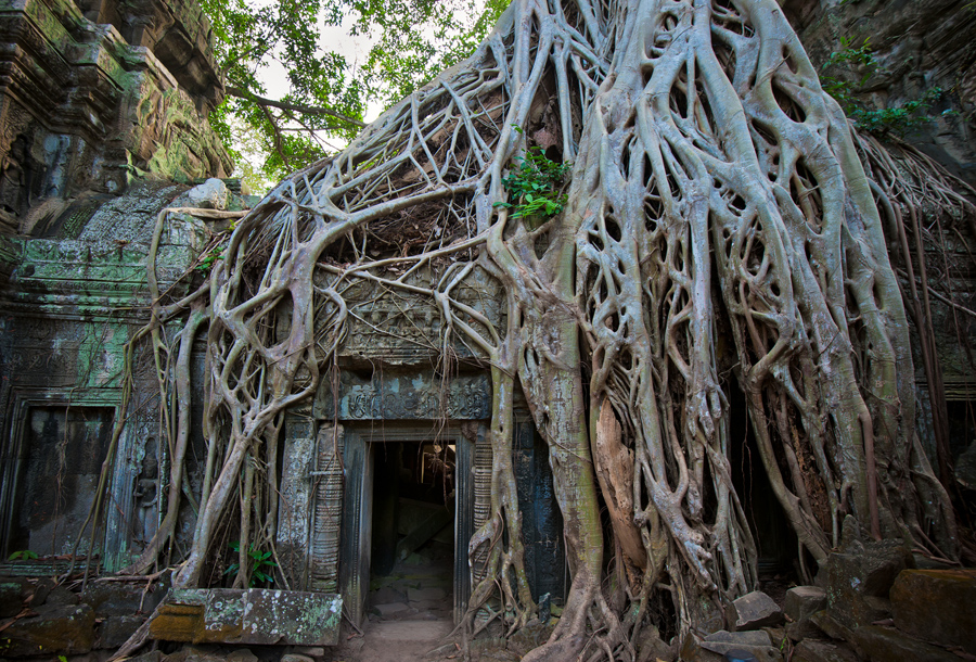 Когда здесь кипела жизнь и все везде жило. Такого огромного количества растительности и близко не было. А сейчас даже сложно представить, что когда-то весь это хаос был густо населен. Только на территории храма жило больше 12 тыс. человек, служило 18 верховных жрецов, больше 2 тыс. слуг, 615 танцовщиц, и почти 3 тысячи священнослужителей. Согласитесь, это достаточно много. Все же природа развивается очень быстро и как только место покидает человек, там сразу же царит природа. А человек самый простой вредитель, который не дает ей нормально развиваться. Это как никогда четко понимаешь в таких местах. Ведь там четко и ясно, что еще пару столетий и храма не будет, так как джунгли его поглотят. Таких больших корней я вообще никогда не видел. От того, что сила этих корней просто сумасшедшая, стены потихоньку разрушаются. С каждым годом все больше и больше стен или совсем прячутся под корнями или просто разваливаются. а ведь войны их не сломали!