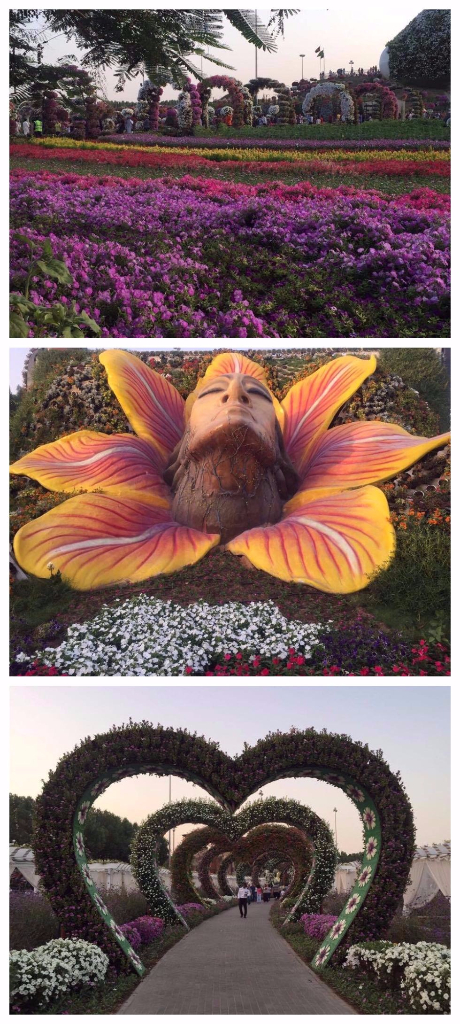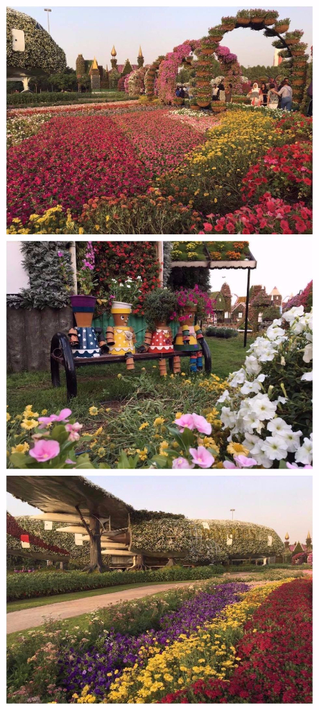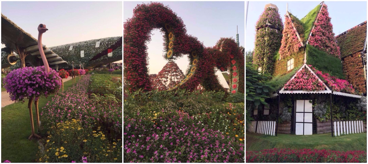 Достижениями технологий, ландшафтного дизайна и красот живой природы можно любоваться в необыкновенном парке цветов, чудо-саду среди пустыни - Dubai Miracle Garden. Парк открылся в 2013 году в преддверии Дня Святого Валентина. На территории свыше 70 тысяч кв. метров высажено более 45 миллионов цветов, доставленных из стран Европы и Америки. Разнообразные композиции из растений, живые скульптуры представлены палитрой из 60 цветов и оттенков. Главным "строительным" материалом для сада стали петунии, кроме них тут растут чорнобрывцы (бархатцы), календула, герань и множество других видов цветов. Дважды в год экспозиция парка изменяется, к уже известным и популярным композициям добавляются новые.