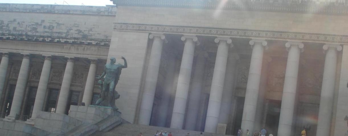 Чтобы территория не была скучной, вокруг здания разбили ландшафтные сады. Кстати, над их созданием трудился французский специалист. У центрального входа поставили 6 дорических колонн и 2 скульптуры итальянского мастера Занетти, которые символизируют Работу и Хранителя Добродетели. Вход в само здание оборудован 3 бронзовыми дверями, на которых сделаны барельефные украшения на исторические сюжеты. Их, между прочим, тоже создавал Занетти. Только на одних дверях можно увидеть становление страны от момента, когда Колумб открыл Новый свет и до того времени, когда начали строить здание. Очень интересная задумка.