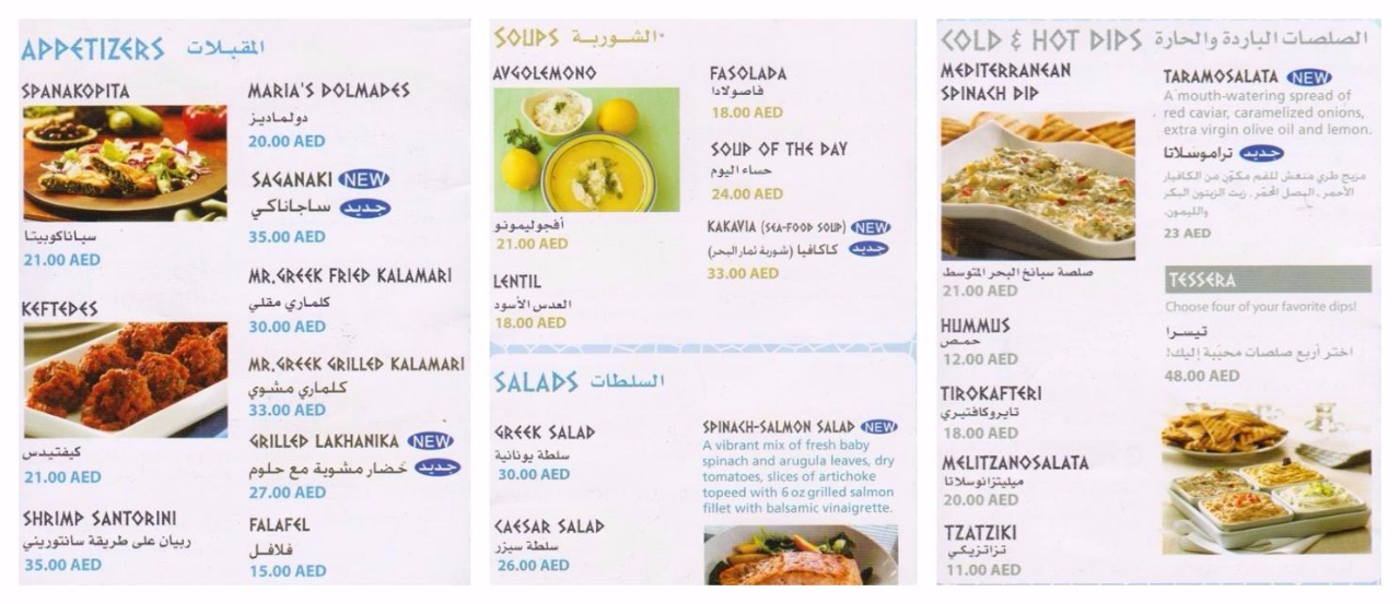 Еще один ресторан средней ценовой категории в Абу-Даби - Mr. Greek. Ресторан греческой кухни находится на Yas Island неподалеку от аквапарка "Yas WaterWorld" и парка развлечений Ferrari World Abu Dhabi. Обед или ужин из трех блюд на двоих будет стоить от 150 до 200 AED, в зависимости от вашего аппетита. Спиртного в MR. GREEK нет, в меню множество блюд из свежих и тушеных овощей, салаты, супы, морепродукты, греческие закуски. Довольно вкусны фаршированные перцы, кабачки и долма. :)