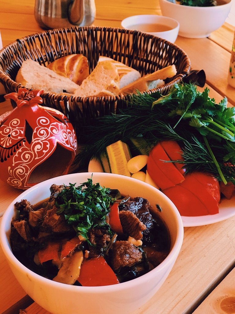 Национальный колорит, правильная подача блюд и вот наконец-то сами блюда. И хоть я не по супам, в Лагман невозможно было не влюбиться. А вот запеченые баклажаны Бадамджан - до сих пор вспоминаю и давлюсь слюной, это просто бомба среди всех баклажан, которые я когда-то трескала! Единственное, что меня смущало в этом блюде, так это кусочки редиски (я не люблю этот овощ, но приготовлено было так, что вкус не портился).