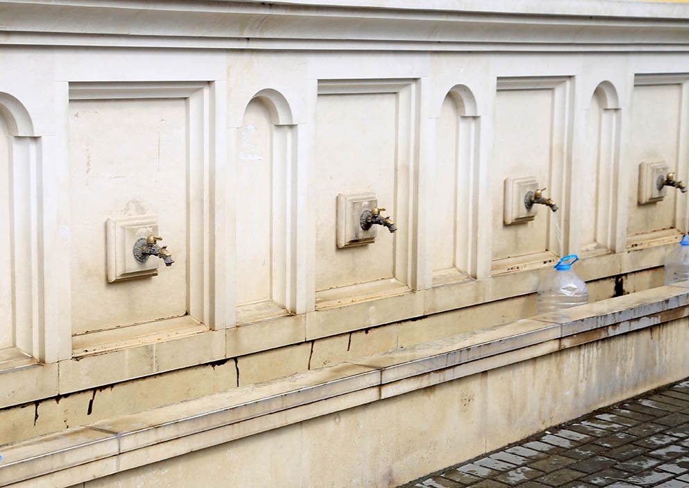 Санаторий, бассейн с термальной водой в Ветрене - платные. Минеральная вода в свободном доступе - бесплатная, на фото показано, как ее набирают.