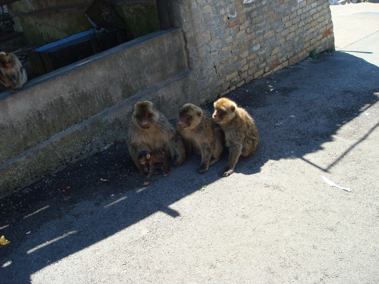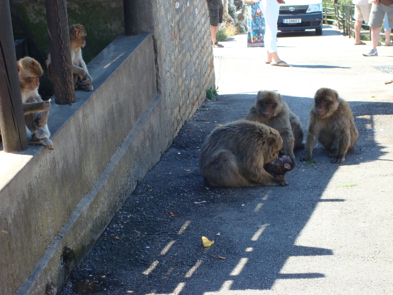 На Гибралтарской скале полно обезьян. Их изображение есть на многих сувенирах, они там как талисман: если обезьяны уйдут с Гибралтара, он перестанет принадлежать Великобритании. В город они вроде не спускаются, но наверху они во многих местах. Есть скопления, например, на площадке фуникулера. Ведут себя нагло. Видела, как они облепили автомобиль. У меня была книга в пакете, так одна обезьяна её выхватила, пока я фотографировала. Книгу отобрала, а с пакетом она ускакала и издалека наблюдала. Так что будьте там осторожнее, кормить их нельзя, да и незачем.