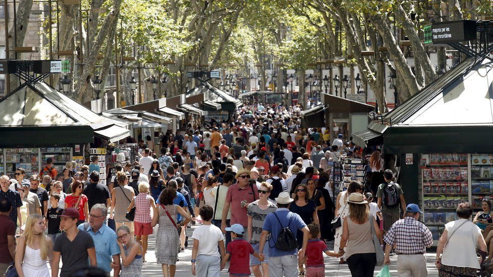 На данный момент сообщается о 80 раненых и 13 погибших. Чтобы в полной мере представить себе трагедию, можно посмотреть на фото, как выглядит улица Рамбла в обычный день.