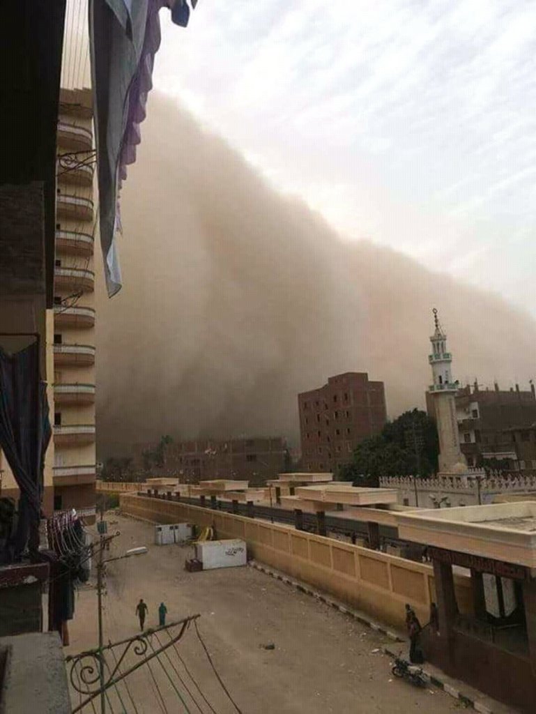 Вот, поделюсь. Песчаная буря подходит к пригороду Каира, к городу 6 Октября (сфотографировано пару дней назад).