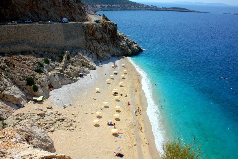 Обязательно нужно посетить пляж Капуташ, который считается самым красивым в Турции. Стоимость шезлонга 5 долларов. На пляже всегда чисто и спокойно, там можно хорошо провести время с детьми. Волн практически нет никогда, так что с ног не будет сносить точно. Рядом есть небольшое кафе, ясное дело с завышенными ценами. Мне нравится этот пляж тем, что его постоянно убирают, есть душ, туалет, раздевалки. Вода там изумрудного цвета. И главное, здесь нет чрезмерно больших толп. Да, есть туристы, но так, чтобы аж чересчур их много было - нет. Я считаю, что обязательно нужно увидеть пляж Капуташ, если будете отдыхать в Калкане. Вот вам фото. Еще очень хороший пляж - Патара. Шезлонги там также стоят по 5 долларов. Хоть пляж и не такой красивый, как Капуташ, но зато там оооочень много места. Спокойно можно раскинуть зонт и рядом в радиусе метра 3 никого не будет. Вот это с я считаю свободой действий
