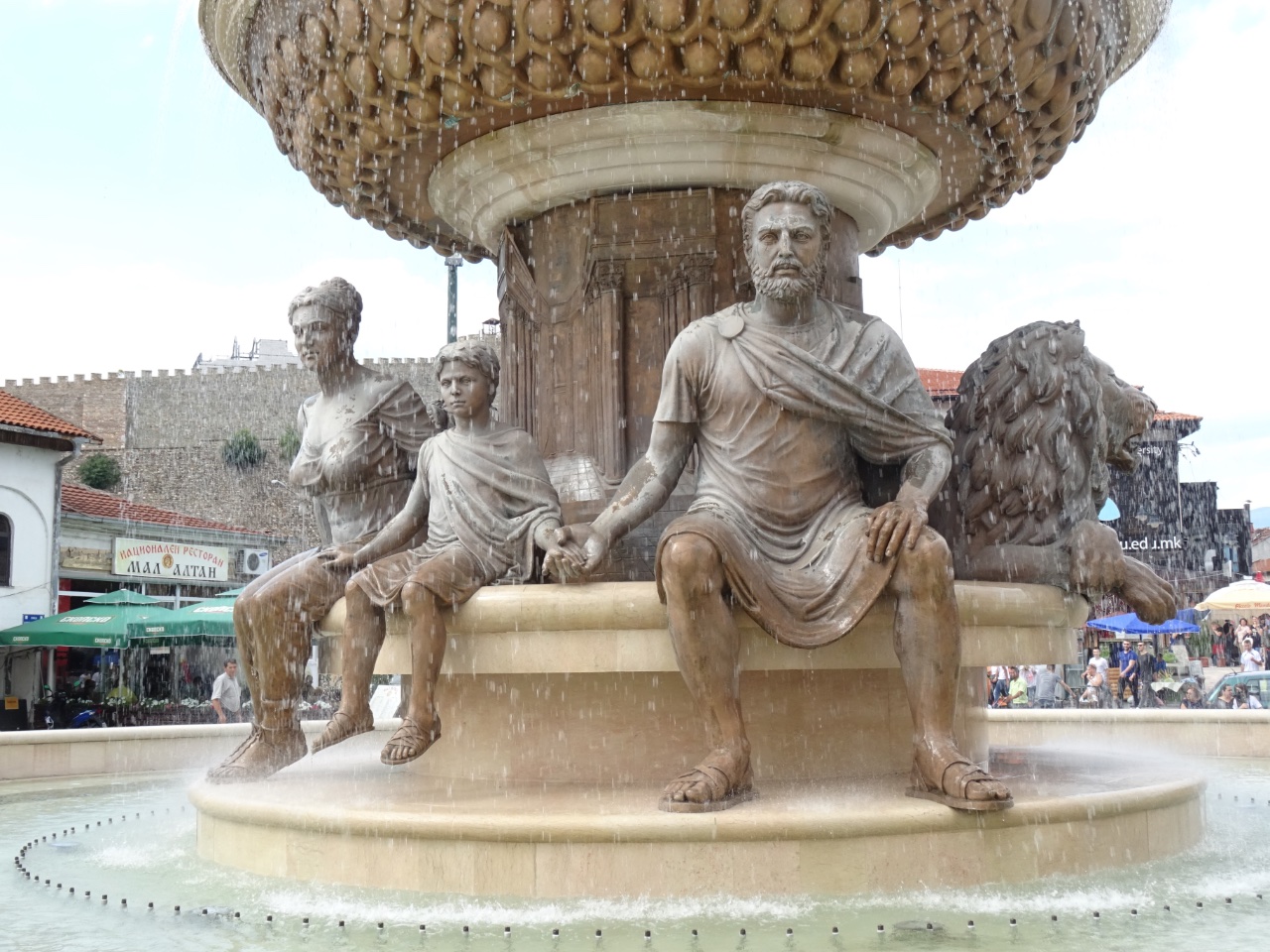 Скопье показался нам несколько напыщенным. В связи с несколькими сильными разрушениями после землетрясений, это практически новый город, только обретающий свое лицо.Поражает количество памятников, которые установлены везде к месту и не к месту. Кажется, что пол Македонии знаменитости. Самая знаменитая македонка мать Тереза заслуженно имеет свой мемориал и вновь построенный в честь нее храм. В городе несколько памятников Македонскому и его семье, хотя сам Македонский там ни когда не был.