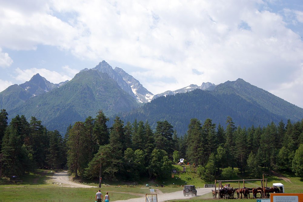 Архыз. Летом красотища. :D :D :D Горы, воздух можно ложками черпать и есть. Вода из речек, водопадов, ледников такая вкусная, что ну просто слов нет!!! Повыше в горах альпийские травы и цветы, земляника. Ближе к осени и ранней осенью - рай для грибников!  Зима - горнолыжные трассы для лыжников любого уровня! Цены вполне демократичные.