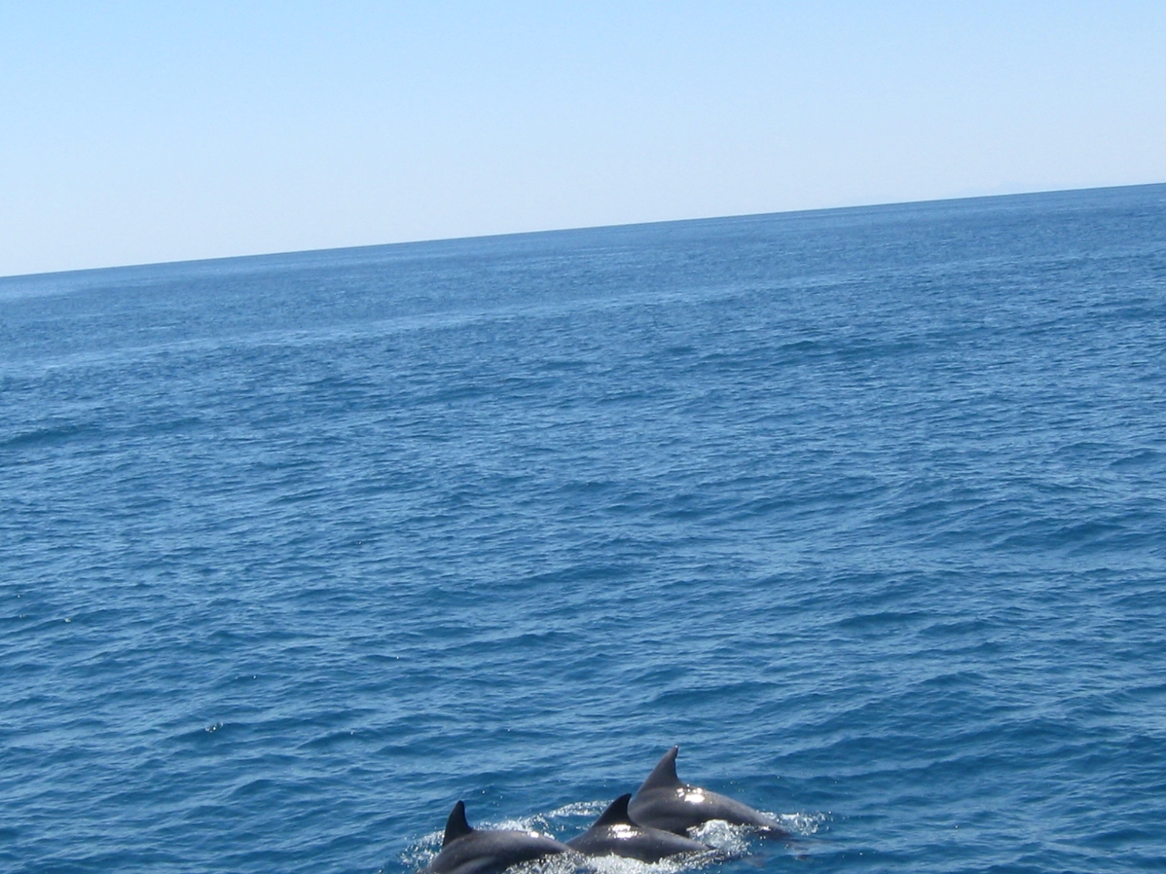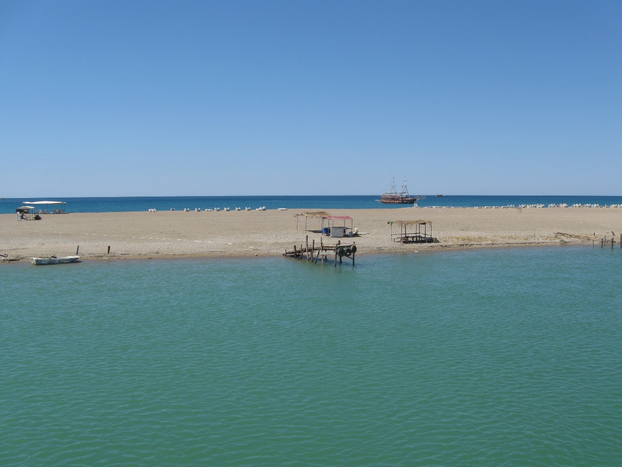 Это была удивительная речно-морская прогулка. Мы плыли сначала по реке Манавгат (отдыхали недалеко от Сиде). Река впадает в море. Так мы очутились в открытом море. Наплававшись сначала в открытом море, затем отдохнув в удивительном месте, где узкая полоска суши, разделяет море и реку. Довольные мы возвращались назад. Вдруг рядом с катером показались три дельфина. Они плыли очень близко к катеру, выпрыгивали из воды вверх. Это было похоже на специальное запланированное представление в дельфинарии, только в открытом море и совершенно бесплатное. Веселили они нас в течении 40 минут точно. Со временем только один из них отстал. Остальные двое так и сопровождали нас большую часть обратного пути. Оказалось, что в мае у дельфинов брачный период. А вы встречали очень близко дельфинов в открытом море? Плавали ли вы когда-нибудь с дельфинами? Прочитала, что самая благоприятная температура воды для них 18-20 градусов. Море конечно было где-то 23-24, а вот водичка в реке Манавгат прохладная 15 градусов. Видимо в этом месте водичка комфортная для дельфинов, смешиваясь получается море более прохладное градусов 20.
