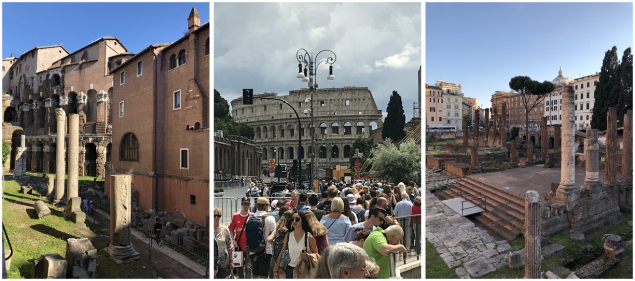 В Риме целенаправленно хотела увидеть только Колизей и Триумфальную арку Константина. Все остальные достопримечательности-развалины: Императорские Форумы, театр Марцелла, Циркус Максимум, место убийства Гая Юлия Цезаря на площади Торре Арджентина, смотрела по ходу прогулок по городу. Не особо нравится любоваться античными руинами, интереснее было посетить Палаццо Барберини и виллу Боргезе, базилики Санта Мария Марджоре, Сан-Джованни ин Латерано и Иль-Джезу. Или любоваться панорамой Рима со смотровых площадок Джаниколо и парка Савелло.
