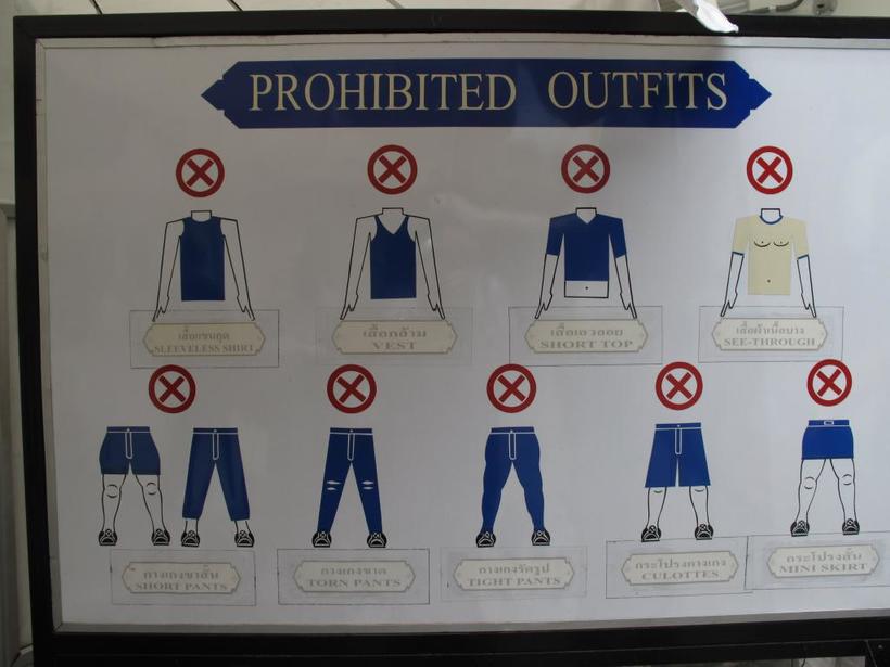 На входе в комплекс достаточно сурово относятся к одежде, потому внимательно отнеситесь к этому вопросу. мы сначала думали, что плечи и колени должны быть прикрыты только у женщин, но оказалось этот пункт касается и мужчин. Причем на входе обязательно вас проверят, правильно ли одеты. Внизу я картинку добавил, как нельзя одеваться.