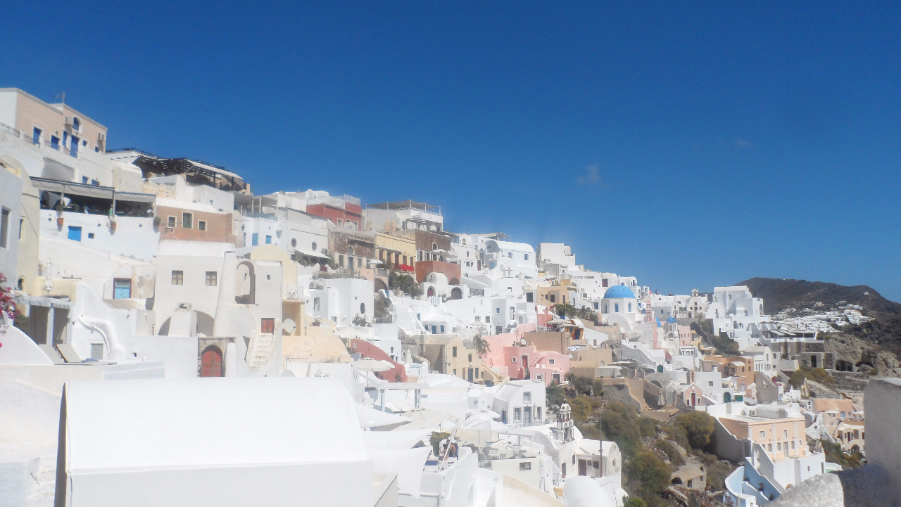 Поселения расположены в горах, поэтому постройки находятся на разном уровне. Домики связаны между собой, крыша одного – это пол для другого. Далеко внизу море и белые яхты, над тобой небеса, а между ними белоснежный рай.