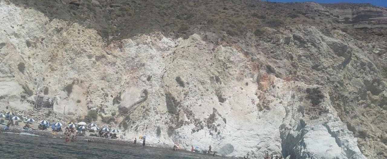 Когда-то остров был круглый, но в 1500 году до н.э. здесь случилось страшное извержение вулкана, и середина острова ушла в морские глубины. Вулкан периодически просыпается, но остров каждый раз возрождается и вновь отстраивается.