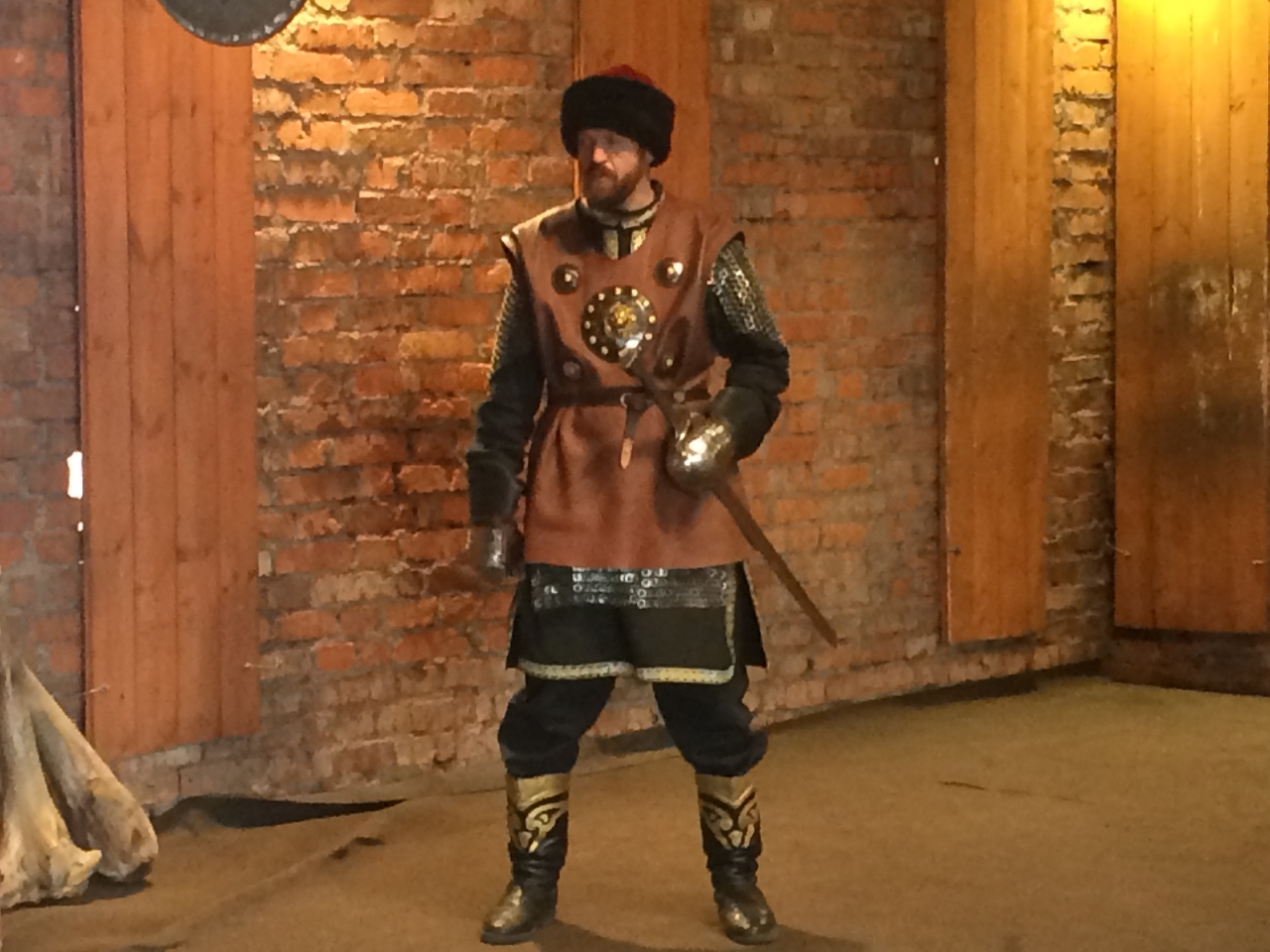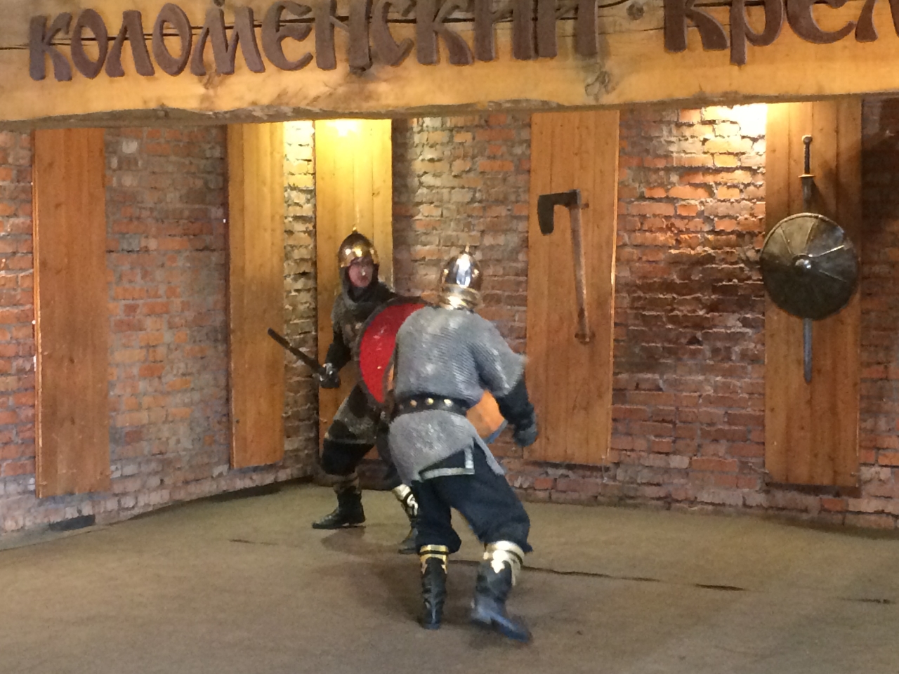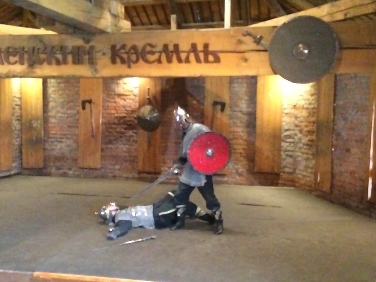 Экскурсия очень интересная! Начало в Грановитой башне, в которой расположены залы с доспехами и оружием. Ведет группу экскурсовод в костюме стрельца. Он сначала рассказывает, а потом разрешает померить доспехи, подержать оружие! Даже девочки в восторге, не говоря про мальчиков! Поднимаемся на самый верх башни. Там проводится "Турнир ратоборцев". Воины, все одетые в костюмы, показывают, как сражались разными видами оружия.