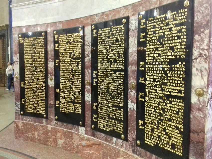 Очень красиво и величественно. А так же наглядно показывает отношение правящей элиты к простым людям. Почему-то считается нормальным помнить фамилии офицеров (дворян по тем временам) и забывать тысячи погибших матросов.
