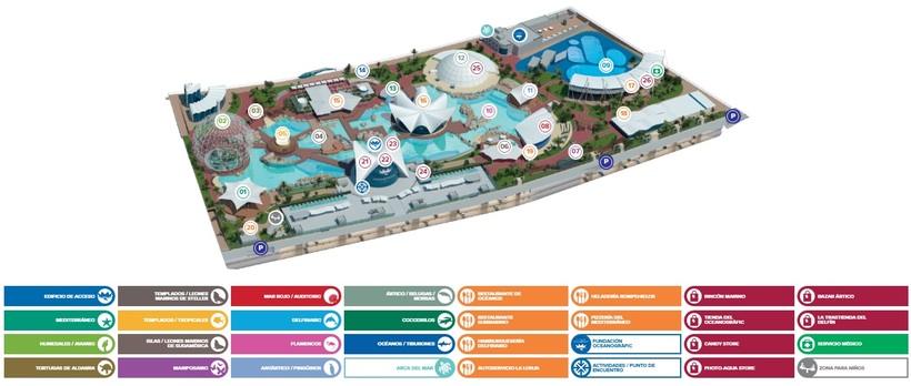 Это чтобы точно знали, что где находится, если не сильно ориентируетесь по интуиции :)  На то, чтобы обойти парк и все посмотреть с чувством и расстановками нужно где-то 3-4 часа. Работает парк до 20:00. Учитывайте, что Испания - это жаркая страна, потому нужно идти туда тогда, когда солнце уже пошло на спад, где-то после 16:00. Первым делом можно пойти в Арктику и Антарктиду, там как-то проще перенести жару. Вообще Арктика и Антарктида - это интересное место (внутри парка я имею в виду). Там можно четко увидеть условия и среду обитания белух, моржей, тюленей, пингвинов и прочих местных жителей холодного континента. Человеку, который ни разу в жизни моржа не видел, будет очень интересно смотреть, как тот проплывает буквально на расстоянии полуметра от него. Некоторые ждут этот момент, чтобы уловить в обьектив, а некоторые просто открыв рот смотрят, так как словить на фото это одно, а оценить в реальности - это совсем другое дело. Особенно дружелюбно относятся к туристам белухи, кажется, что они специально к себе привлекают побольше внимания. Да, там не сильно хорошее освещение, потому фото будут не столь яркими и красочными, если у вас обыкновенный сматрфон в руках. Ну может так и нужно, ведь гораздо лучше смотреть на живое животное, чем на фото.
