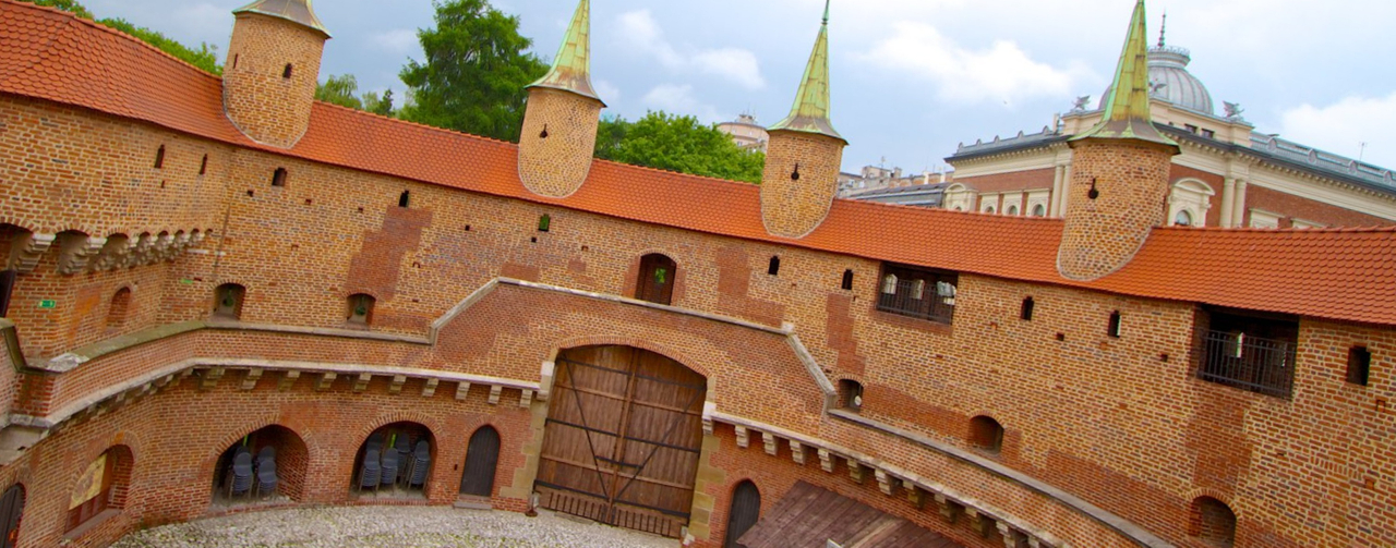 Барбаканом называется любое фортификационное сооружение, изначальное предназначение которого - защищать вход в город или крепость. Если говорить о Краковском барбакане - его построили в конце 15 века для того, чтобы у Флорианских ворот была дополнительная защита. Эти ворота ведут в Вавель. В Европе осталось 3 типа таких сооружений, и вот одно из них - краковское. На протяжении долгого времени краковский барбакан был сильнейшим оборонительным сооружением города, которое в военное время было единственным входом в Краков. Попасть в город можно было только через 24-метровый ров и крытый проход, который соединял барбакан с Флорианскими воротами. Как и повелось, с такой оборонительной крепостью связана легенда. Говорят, что в 1768 году ( это было время, когда возле города стояли русские войска), местный ополченец Марчин Орацевич убил русского командира Никиту Панина без пуль. Вроде как в ружье он зарядил самую простую пуговицу, которой попал командиру прямо в лоб. Тот скончался на месте. В Кракове есть много уникальных культурно-исторических памятников, но такими необыкновенными архитектурными формами отличается только Краковский барбакан. Местные жители называют его кастрюлей за его необыкновенную форму