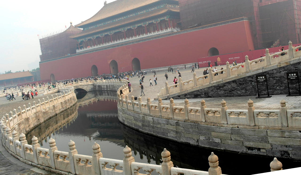 Предание гласит, что в общем во дворце Небесного запрета около 10 тыс. комнат. И это при том, что дворец сына Неба ( именно так и величали императора себя императоры Китая) не мог быть чрезмерно богат, потому что находится в поклонении Небесного правителя. На вид кажется, что их там меньше. Скорее всего, так и есть. Ну нравится китайцам эта цифра, ну значит пусть так и будет. Сам город окружен высокой стеной и рвом, который наполнен водой. Через этот ров сделали несколько мостов. Как и полагается, центральные только для членов императорской семьи, следующие для высших военных и гражданских чиновников, а самые крайние для остальных обитателей Запретного города. Они еще назывались публичными.