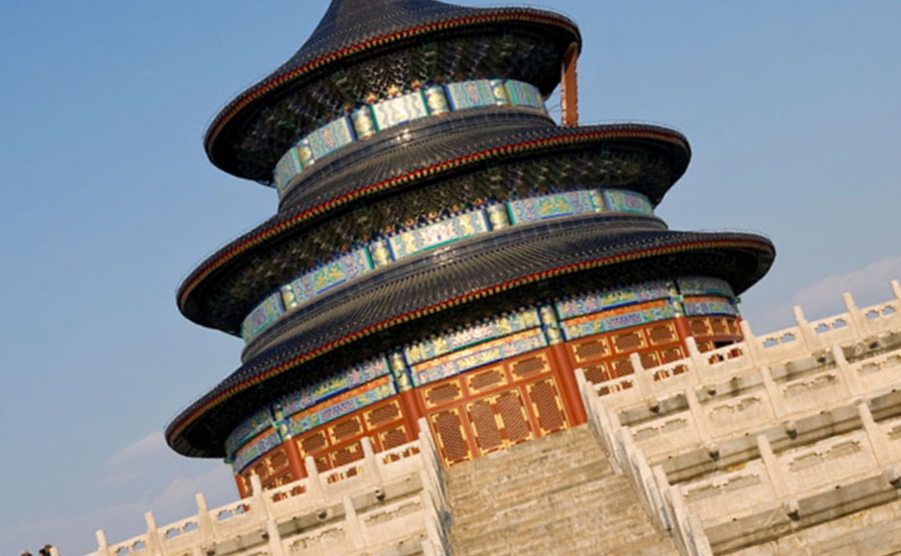 Во время строительства храма не использовались ни гвозди, ни цемент. Даже цвет храмовой черепицы отличается от характерного для других построек. В то время везде крыши делали красными, а в этом храме она синяя. Территория очень большая, она в несколько раз превышает Запретный город.