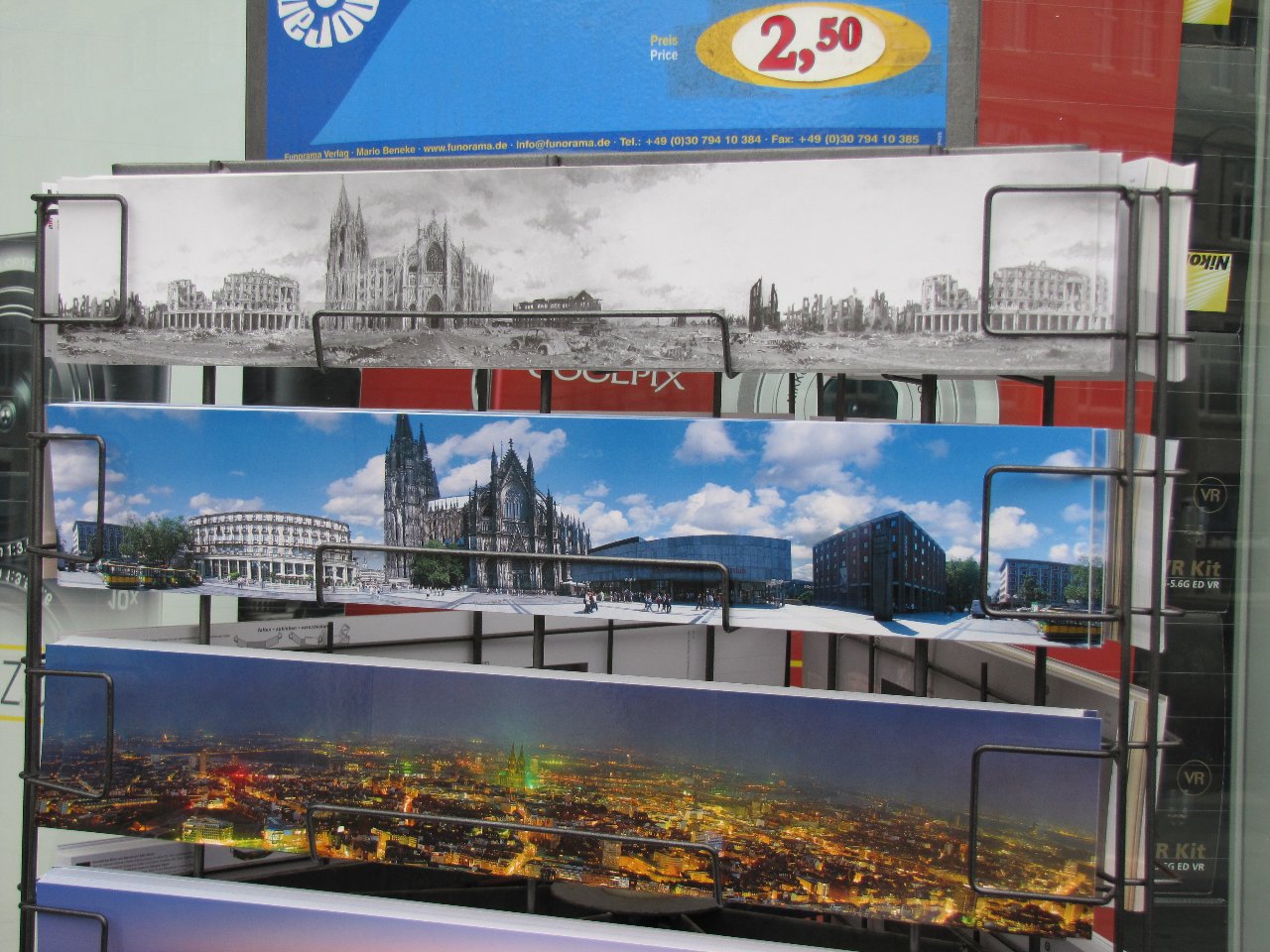 Собор, действительно впечатляет, как изнутри, так и снаружи. Меня поразило, как выглядел Кельн и его окружение после бомбежек Второй мировой войны и сейчас. Даже сфотографировала открытки, которые продают около Кёльнского собора для сравнения.