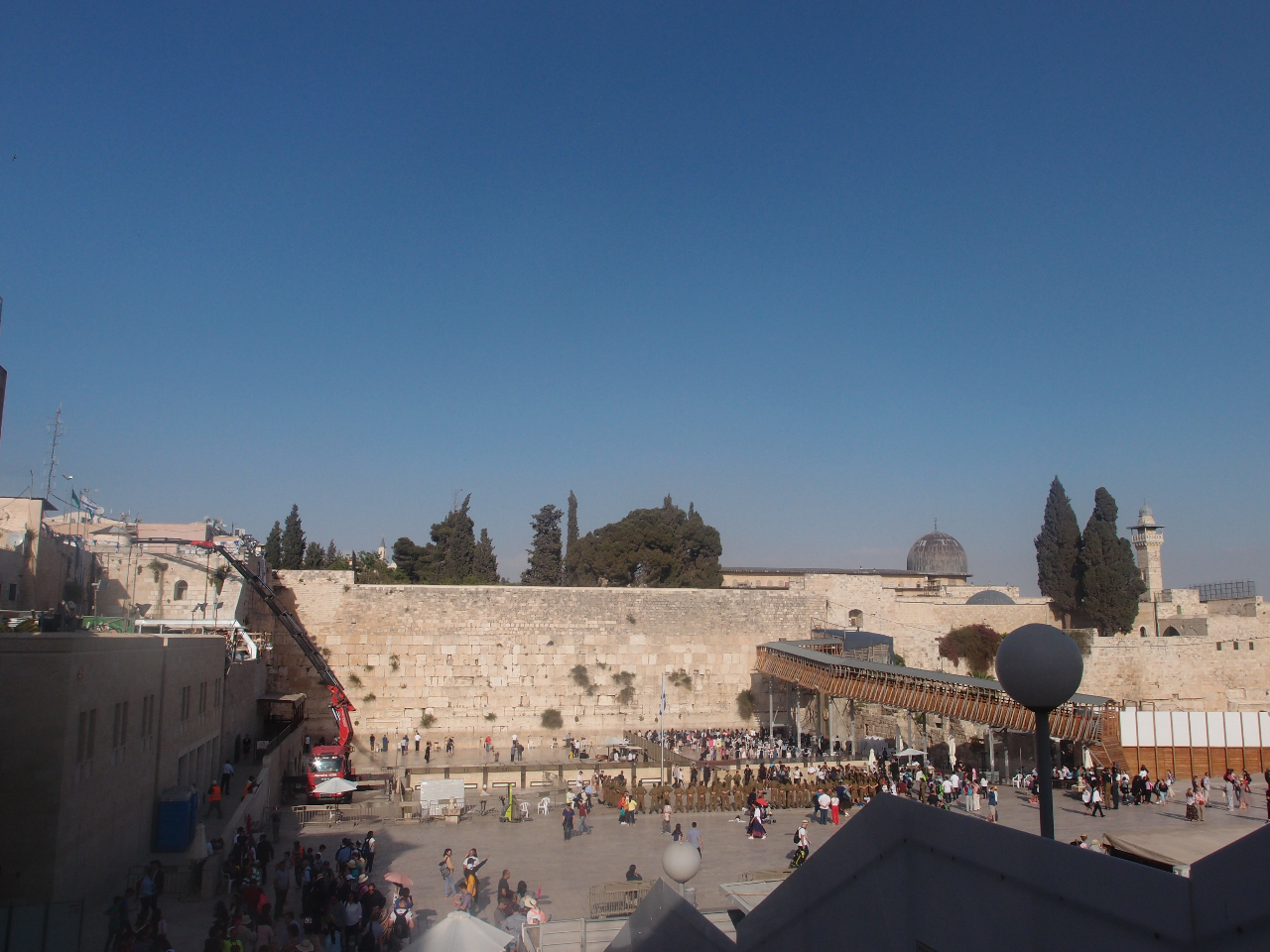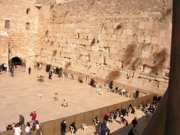 Далее мы направились к Стене Плача. Она находится у самых границ Старого города. По традиции, нужно написать на бумажке свои желания и вложить их между плитами Стены, подержать свою ладонь на плитах, чтобы почувствовать энергию, и отходить, не поворачиваясь спиной к Стене. Перед тем как впустить нас к месту, охрана тщательно проверила наши сумки рентгеном (обычное дело в Израиле). Далее мы разделились по половому признаку (пространство для мужчин слева, для женщин справа). И там, и там стоят фонтанчики для омовения рук. Прикасаться к Стене следует только чистыми руками. Пространство перед Стеной многолюдно, и чтобы подойти к самой Стене, нужно подождать пока освободится место. Вся часть пола возле Стены покрыта бумажками с желаниями - для них уже давно нет места между плитами. Свои бумажки туристам моей группы всунуть еле удалось. Думаю, эти бумажки, как и множество других, ожидает та же участь. Перед Стеной расположено множество стульев, если кому-то не хватит стула, справа их, поставленных друг на друга, целая гора. На один из стульев села и я. Я смотрела на всех этих людей, пришедших к Стене Плача, уповая на ее помощь. Многие из них молились, кто-то плакал. Возможно, для кого-то из них Стена стала последней надеждой. Есть ли там место атеисту вроде меня? Стена примет всех, кто готов ее принять.