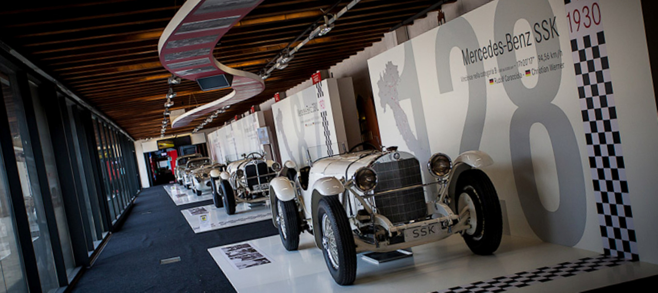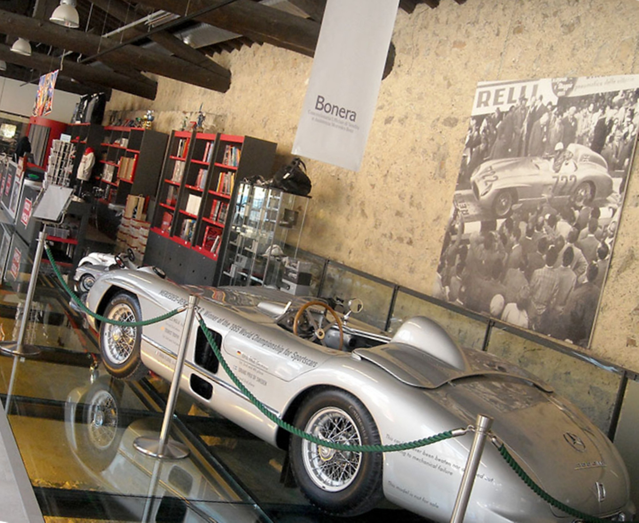 Музей здесь расположили, потому что фактически здесь и началась знаменитая гонка, в которой в большой мере прославились автомобили марок Альфа Ромео, Мазерати и Порше. Всегда эта гонка проводилась на дорогах общего пользования, которые на ее время проведения перекрывали. Для этого на протяжении всего маршрута выставляли указатели, которые служили ориентирами для гонщиков. Уже позже эти указатели стали считаться официальным символом Милле Милья.