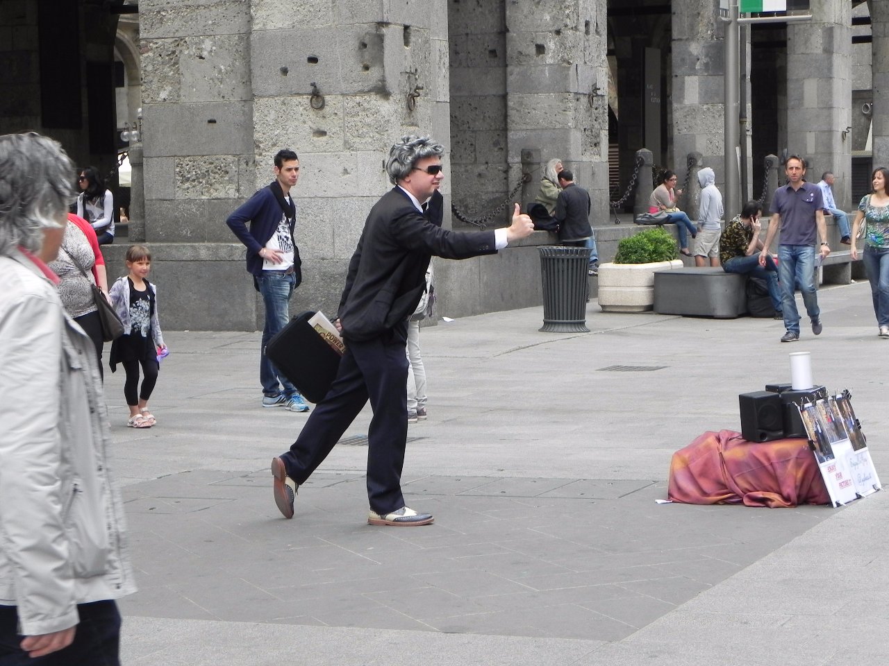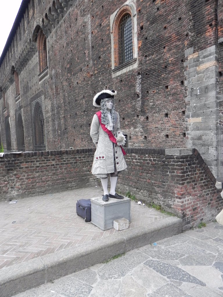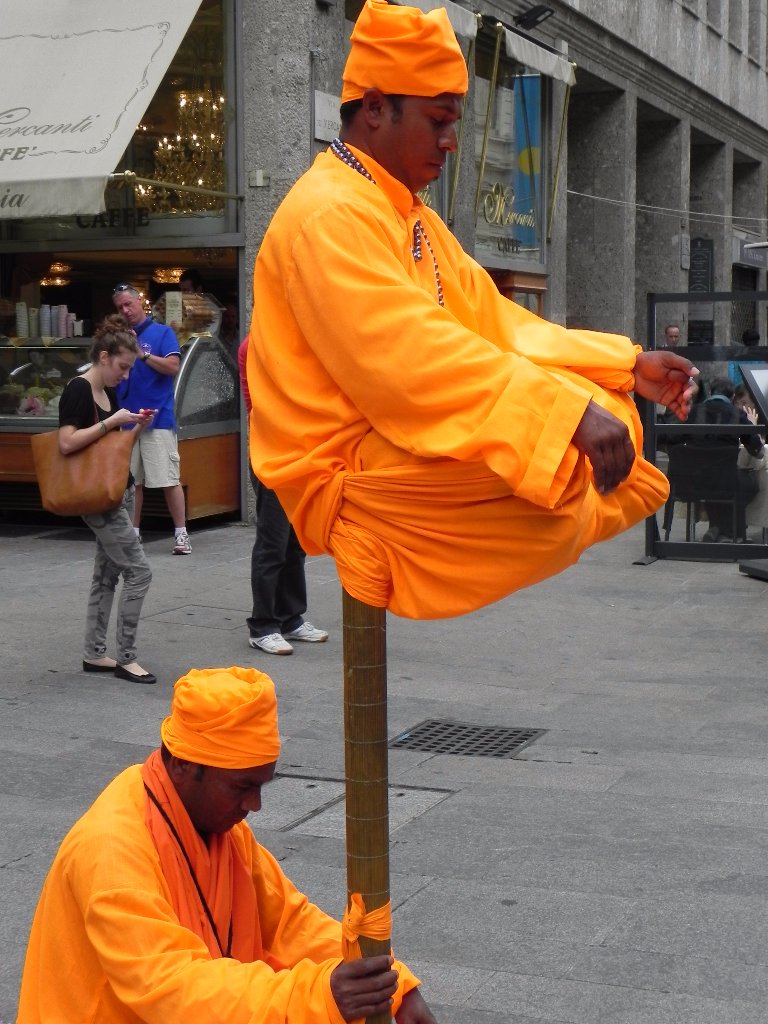По роду работы мне иногда приходится бывать в Милане. И каждый раз обязательно нахожу там что-то совершенно новое, необычное, что удивляет и восхищает. Например, однажды я зашла внутрь собора Дуомо, где уже бывала не раз, и буквально "зависла", сидя на скамье между толпами туристов. На меня как будто благодать снизошла, так было хорошо, что хотелось сидеть там вечно. Очень необычное было ощущение. А в другой раз фотографировала на улицах живые фигуры. Меня поражает творческая фантазия и выносливость этих людей. На фото в оранжевых одеждах - одна  из фигур, которая осталась загадкой не только для меня. Куда только не заглядывали прохожие, чтобы разгадать фокус!