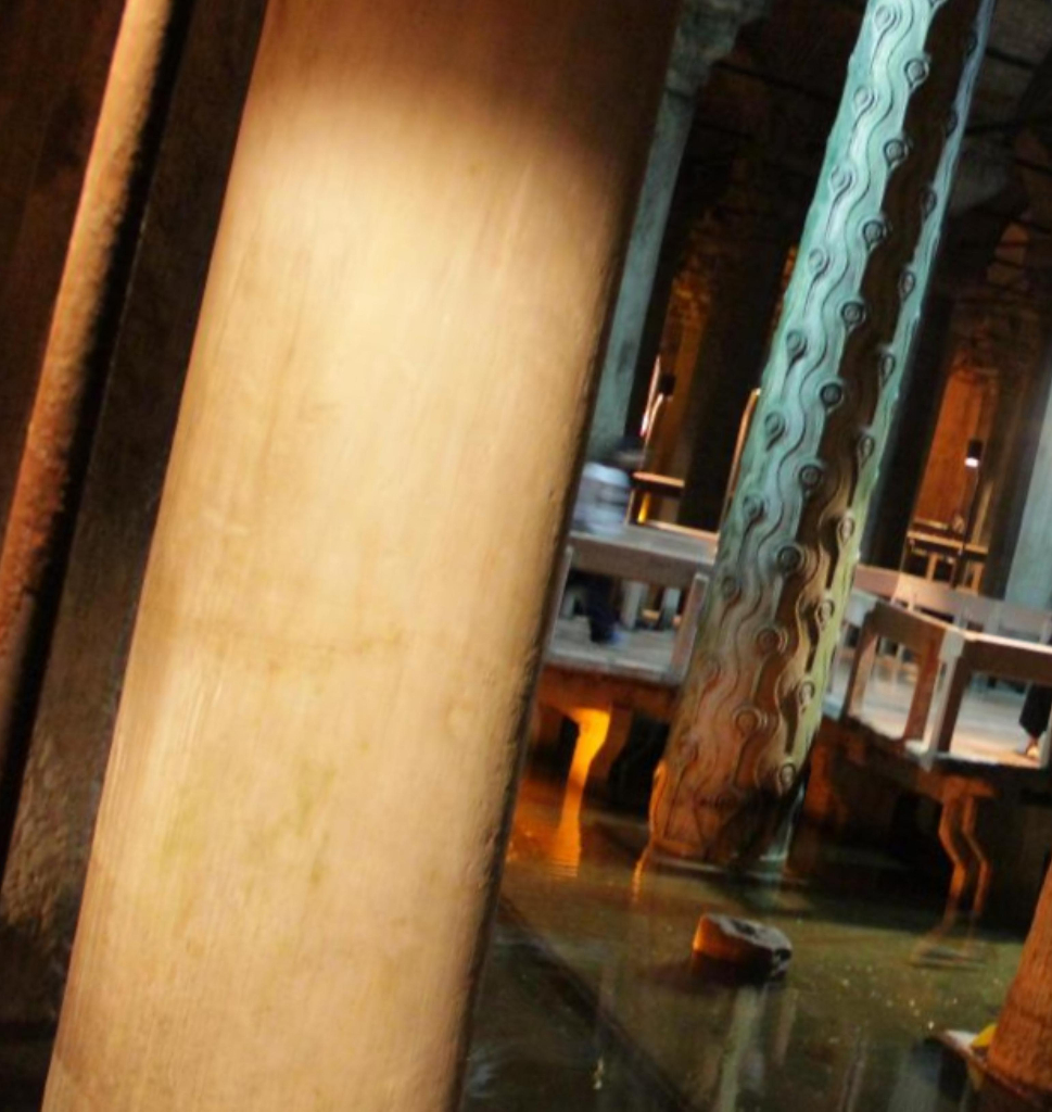 Если включить фантазию, можно сказать, что цистерна Базилика отдаленно на поминает дворец, который состоит из 336 девятиметровых колонн. А колонны эти больше не было где взять, как в античных храмах. "Гениальное" решение пришло кому-то. Две колонны возглавляют головы Медузы Горгоны. Сказать точно, откуда взяли эти колонны не могут историки до сих пор. Одну колонну поставили вниз головой, а вторую повернули в сторону. Было это случайностью или так нужно было - сложно сказать. Может они колонну головой вниз поставили, потому что так было проще, а мы в этом тайный знак сейчас ищем. А тайный знак заключается в том, что люди могли боятся окаменеть, случайно глянув в глаза Горгоне, вот и поставили таким образом. Но это только догадка. [attachment=0]IMG_6309.jpg[/attachment] [attachment=1]IMG_59876.jpg[/attachment]