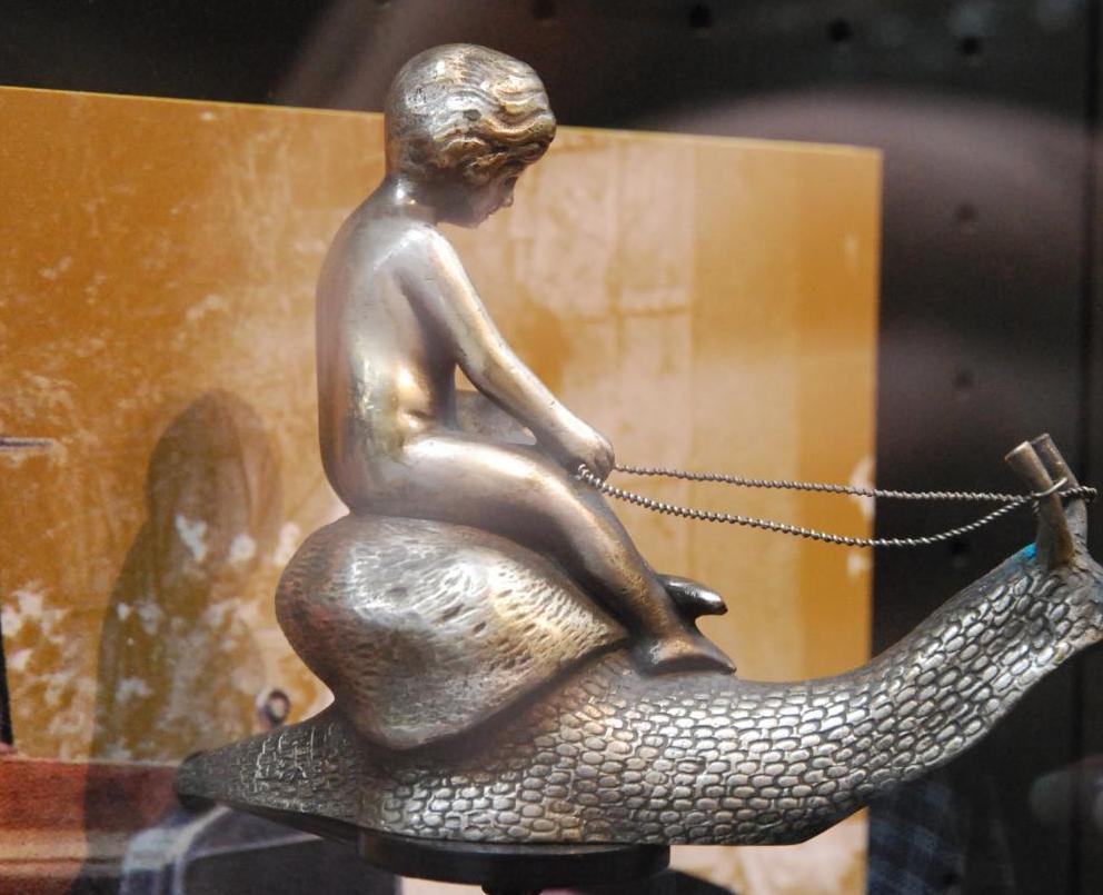 Еще на подходе к зданию в глаза бросается большое количество макетов гоночных машин. Я не считала, сколько их там. но реально много. Я так понимаю, что организаторы этого музея хотели сделать акцент на том, что в этой коллекции особое место занимают именно гоночные машины. Перед входом в основной зал можно еще полюбоваться собранием самых разных эмблем, которые когда-то устанавливались на машины. Поверьте, там сколько смешного - и зайцы и сигаретами, и жабы с улитками и вот такие чудаки, которые оседлали улитку :)