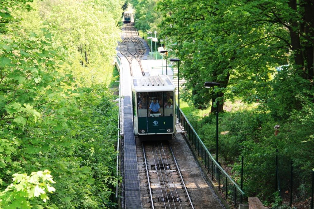 От остановки Уезд до холма можно доехать на трамвае (57, 20, 22, 12). Это я так, на всякий случай, если вы будете добираться сами, а не в составе экскурсии. Высота холма 327 метров, так что можно рассматривать два варианта пподьема: самому по тротуарам или на фуникулере. На фуникулере можно доехать по самом простом проездном, если у вас такой имеется. Делает фуникулер по пути 3 остановки, так что будьте внимательны, потому что можно выйти раньше времени, а следующего фуникулера минут 30-40 ждать придется. Не всегда такая перспектива радует.