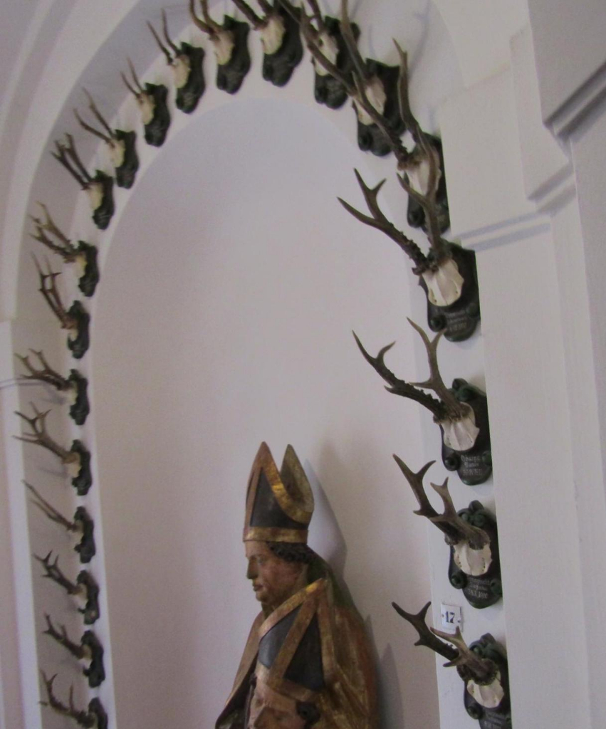 все замки Чехии мне еще не удалось осмотреть их слишком много. В нескольких я побывала, а с некоторыми ознакомилась благодаря интернету. Но что касается охотничьих трофеев, то мне кажется, не один замок Чехии не обошелся без чьих-то рогов или пугал. В то время охота и трофеи были почтительным развлечением для мужчин, многие и сейчас продолжают обвешивать свои дома ястребами и прочей дичью.