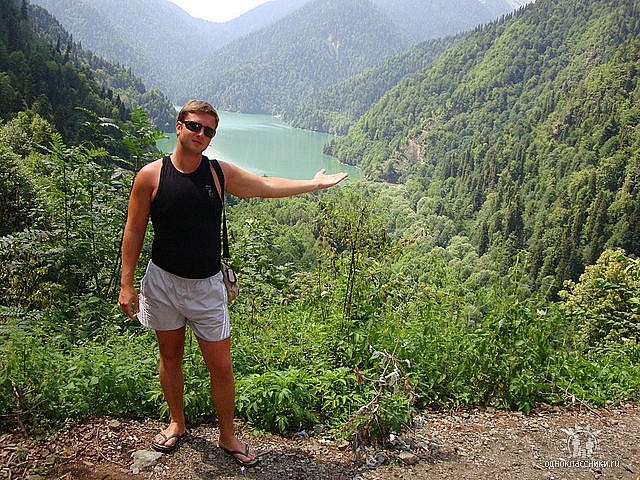 Наверное, нет ни одного туриста, который, приехав в Абхазию, не отправится на озеро Рица и не сделает фото на его фоне, и я не исключение. Были там в прошлом году, правда мы не покупали экскурсию, а ездили сами, так как были на машине. Заплатили только на въезде в реликтовый парк - заповедник. Место действительно сказочное: первозданная природа неописуемой красоты, каньоны, горные реки. Ехали мы долго, так как часто останавливались пофотографироваться, заезжали на водопады, пробовали горный мёд . Рица - чудо природы. Долго мы там гуляли, любуясь красотами природы. Потом проехали на Дачу Сталина, правда, в сами строения не заходили. Самое интересное здесь и то, за чем сюда все едут, - это шикарный вид на озеро. Шикарные пейзажи могут вдохновит на подвиги или написание книги. Сюда нужно ехать расслабляться и наслаждаться пейзажами, здешним воздухом и невероятной атмосферой. Если вы приехали в Абхазию и не посетили озеро Рица, считайте свою поездку просто напрасно потраченным временем. Правда, сюда нужно ехать каждому. Ну и красивые фотографии на фоне шикарного пейзажа явно будут не лишним напоминанием об удачной поездке.