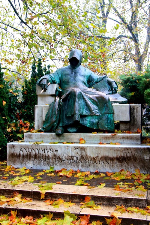 В парке с каждым камнем связана какая-то история. Мне ж больше всего понравилась скульптура Анонимусу, реально существовавшему в истории Венгрии человеку, имя которого никому не известно. Даже у скульптуры не видно лица, оно укрыто капюшоном, и ученые до сих пор гадают, кем же он был, этот Анонимус, описавший историю расселения венгров в книге "Деяния венгров". Ну, а для туристов придумана легенда, что если прикоснуться к перу Анонимуса, в тебе проснутся новые таланты. Что все и делают