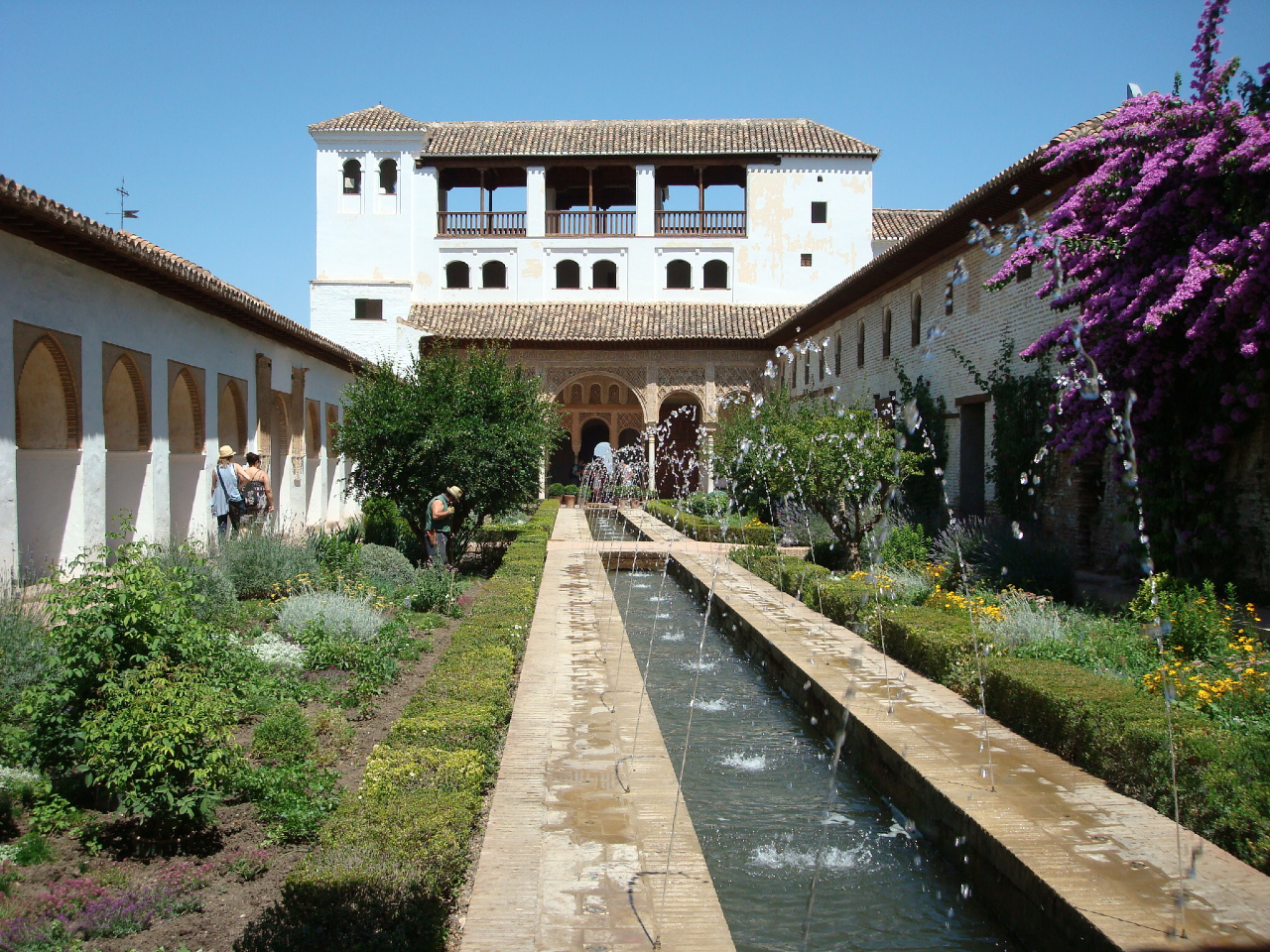 Один из самых известных в мире садов - Хенералифе в Гренаде. Там и сами дворцы стоит посмотреть, а потом уже в сады. Правда, фото без обилия туристов вряд ли получится, особенно на аллее фонтанов. Там атмосфера своя, особенная, даже если вы туда приехали в период нестерпимой андалузской жары. Веет какой-то прохладой и умиротворением.